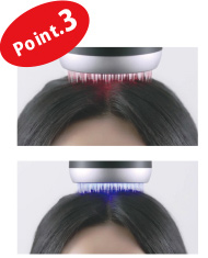 赤/青 LED照射により頭皮を刺激し血行促進と新陳代謝を高める